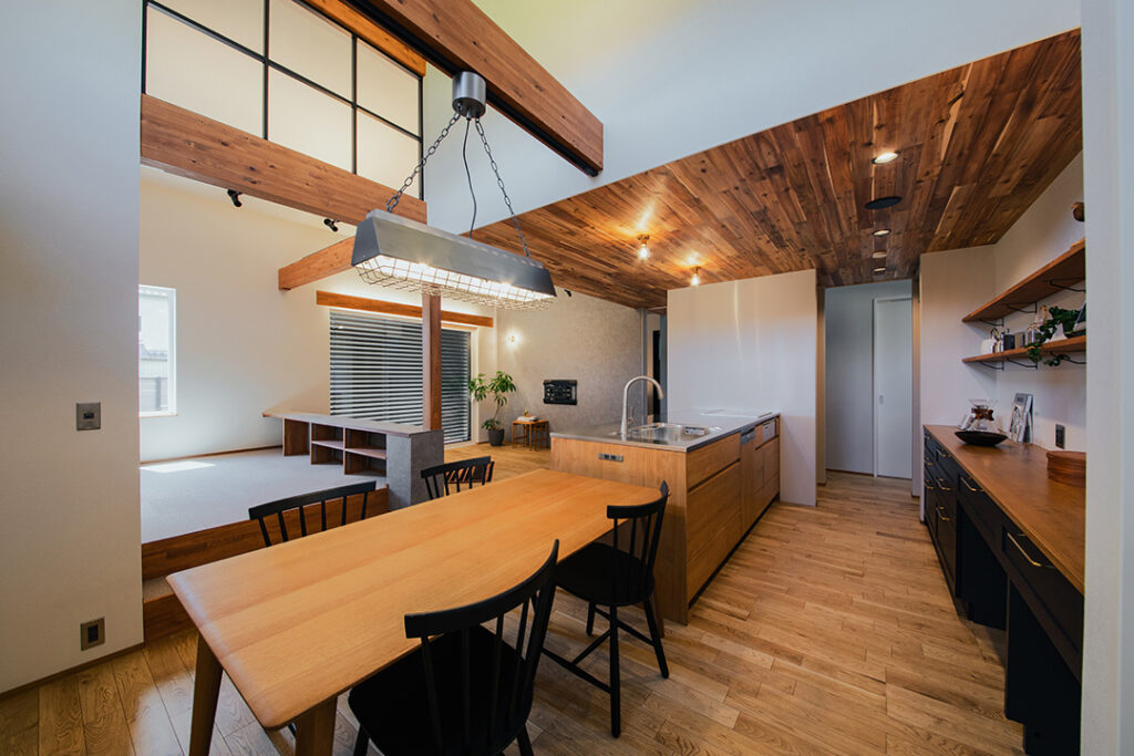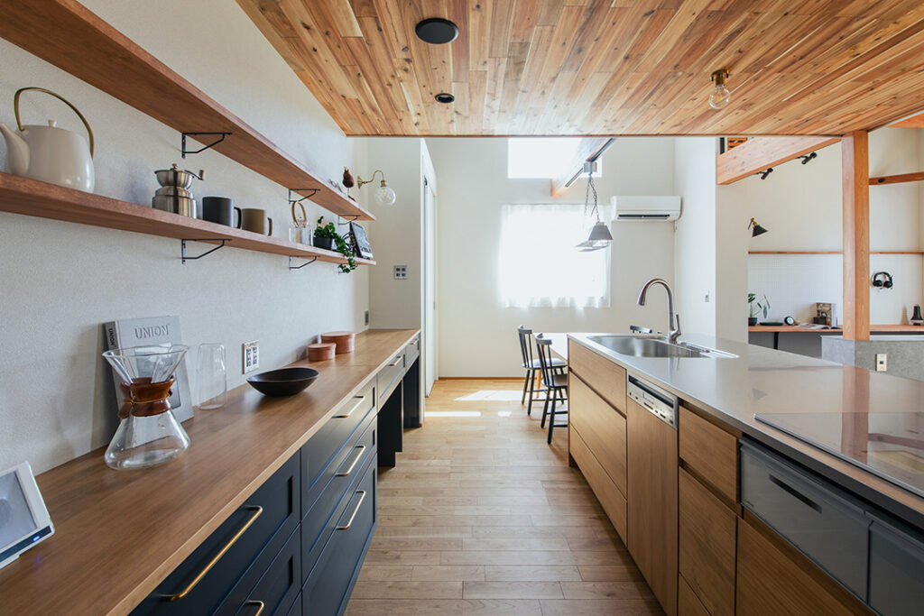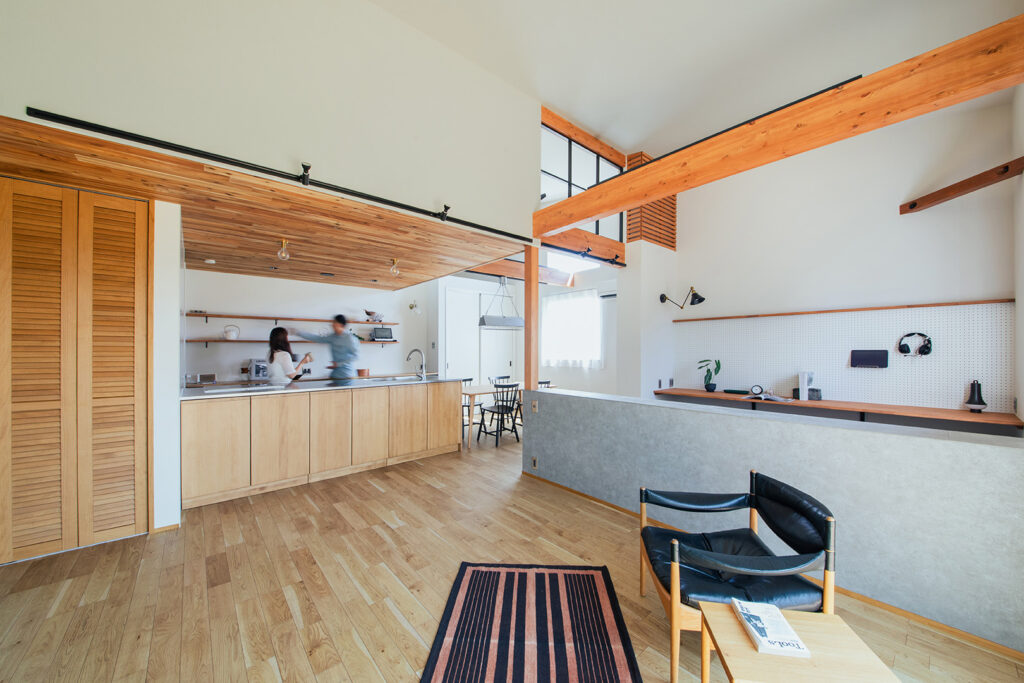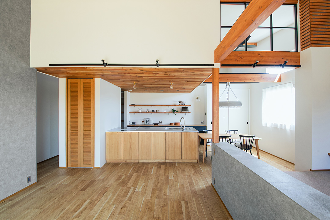 “木製キッチンを囲む、大空間が心地よい31坪の平屋”