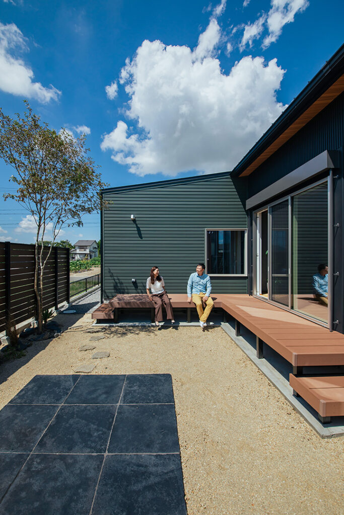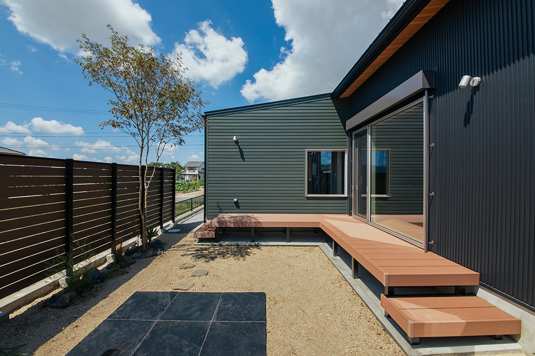 またL型の外観にすることで前面道路からの視線をほどよく遮り、人目を気にせず過ごせるお庭が完成しました。
