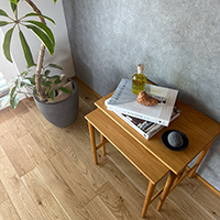 玄関の石積階段や室内に仕様したアカシアの板貼り
