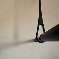 解放感たっぷりの高い勾配天井に、アクセントのアイアン格子を設けました。また格子の隣のスペースは24時間換気の給気口です。しっかり換気が出来つつ、意匠性をもてるよう造作でルーバー格子を作成。性能とデザインを両立し、平屋の大空間をいかせるデザインになっています。